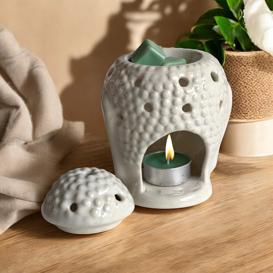 Hello Handmade Handcrafted Ceramic Round Shaped Aroma Diffuser with Wax Melts and 2 Tea Light Candles