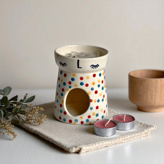 Polka Dot Ceramic Wax Melt / Camphor Burner (2 Tealight Candles Included)
