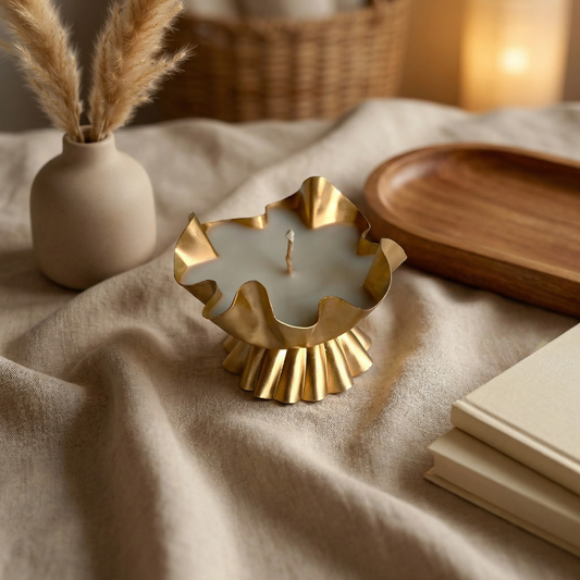 Golden Ruffle Urli Candle