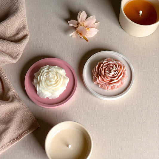 Peony Candle Set – Vanilla & Jasmine with Jesmonite Tray
