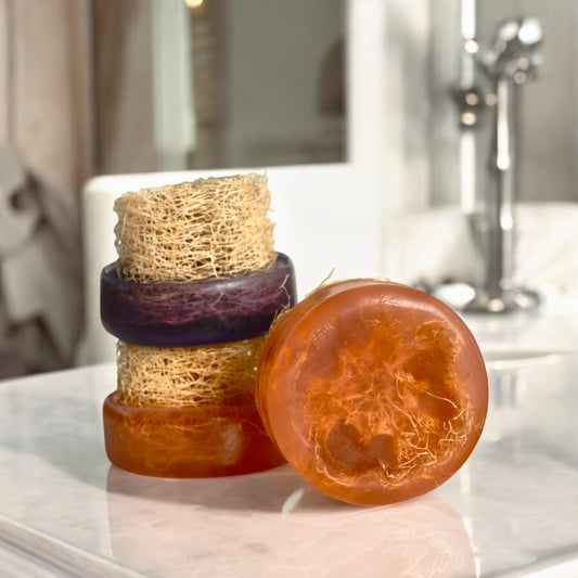 Luxury Handmade Bathing Essentials Gift Box – Candle,Wax Tablet, Whipped Soap, Loofah & Bar Soaps