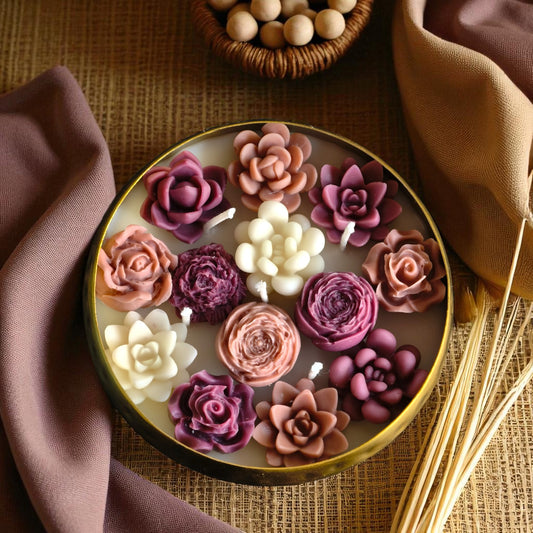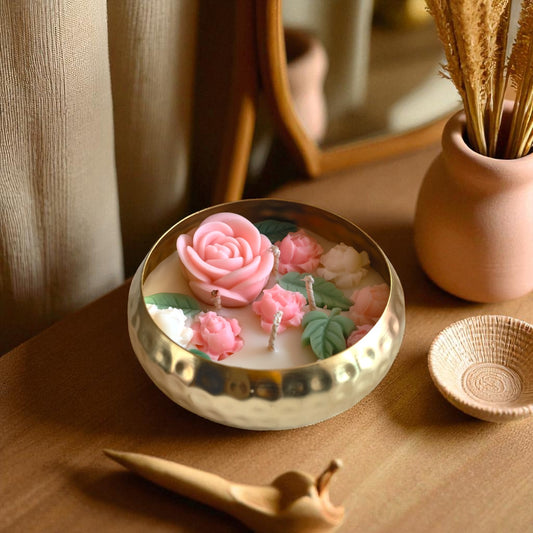Rosette Radiance Metal Urli Candle (Rose Mosaic Scent)
