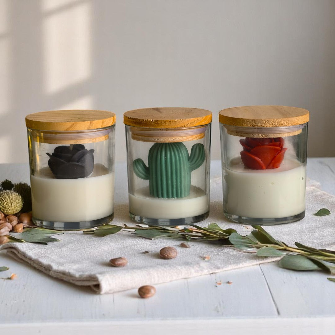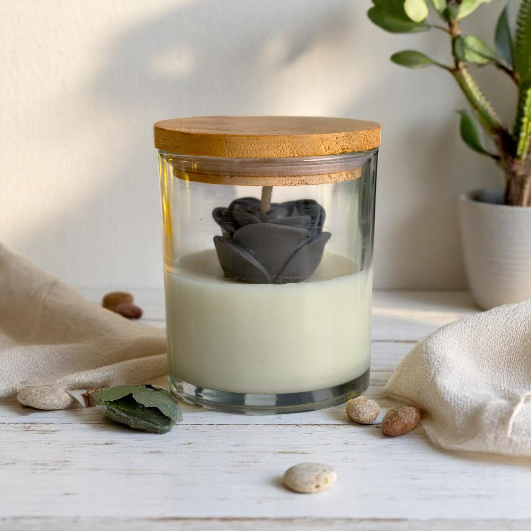 - Transform your home into a haven of tranquility with our Scented Candles. Each candle is meticulously crafted with premium, all-natural soy wax and infused with a rich blend of essential oils, ensuring a clean, long-lasting burn without any harmful chemicals or synthetic fragrances. Encased in a stylish and reusable glass jar, our candles are designed to complement any decor while providing a warm and inviting ambiance.