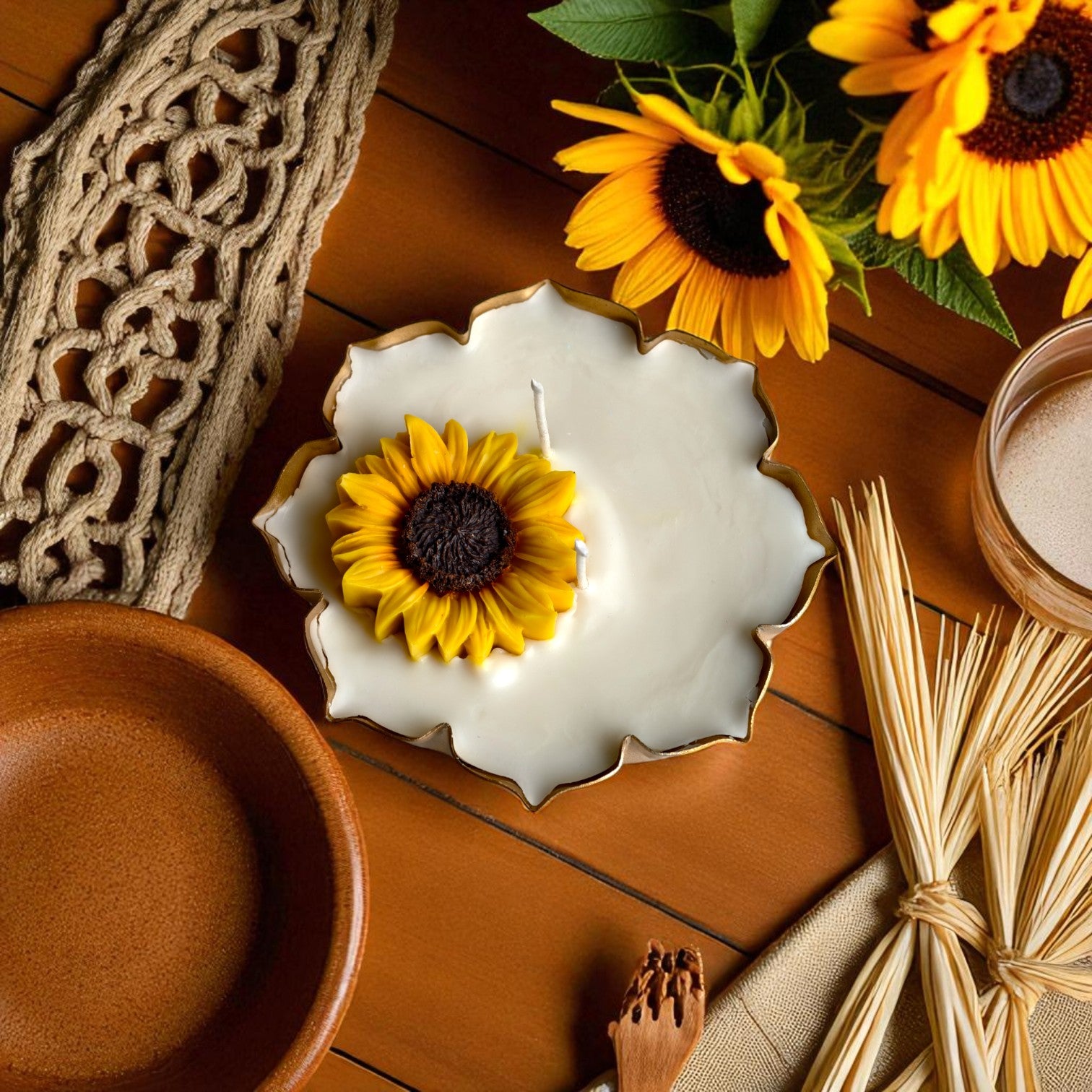 🌻 Sunflower Serenade – Boho Sunflower Urli Candle